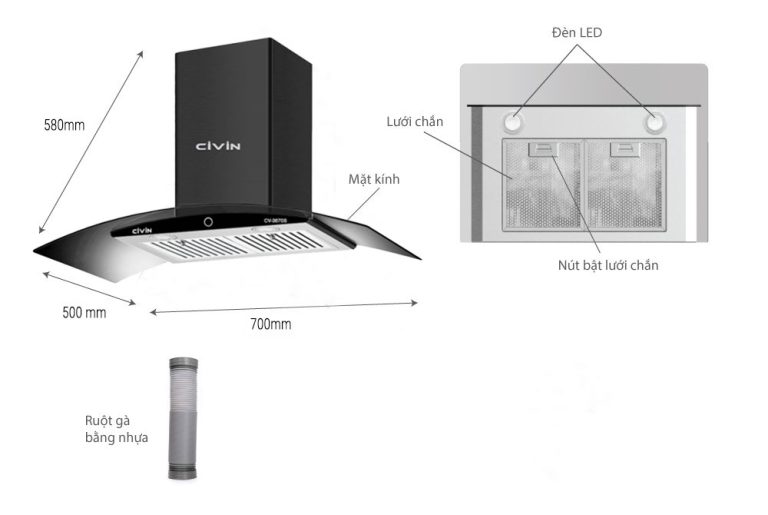 4. Hướng dẫn lắp đặt máy hút mùi kính cong Civin  chi tiết từng bước