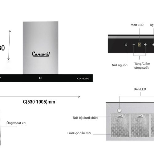 Máy hút mùi kính phẳng CANAVAL Model CA-8270